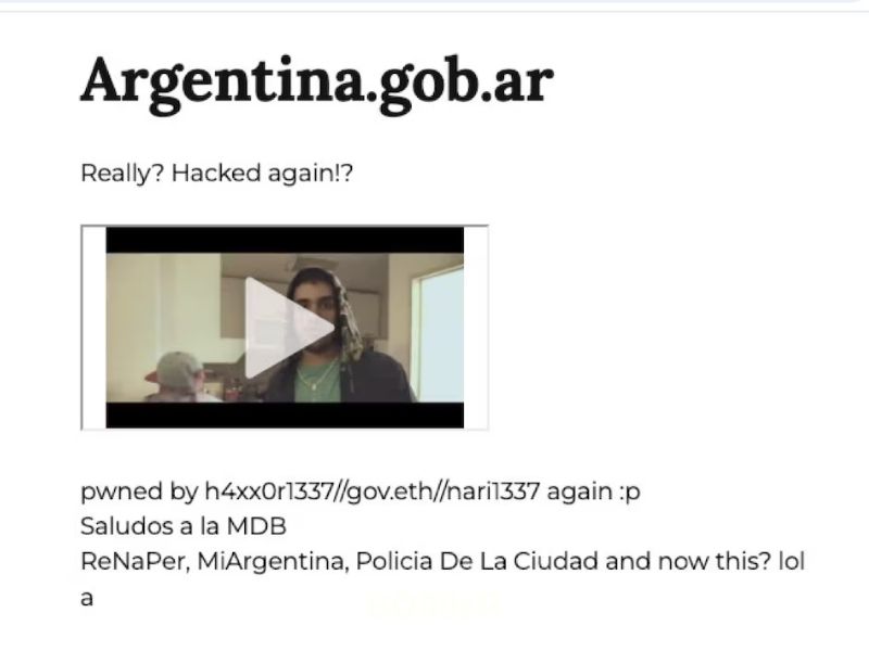 Los ciberdelincuentes, identificados bajo el pseudónimo “h4xx0r1337 $gov.eth”, dejaron una serie de mensajes provocadores, incluyendo frases como “really? hacked again!?”, así como insultos directos contra el presidente Javier Milei, con la expresión “fuck Milei” en el pie de página del portal. Adicionalmente, se reportó la aparición de videos, incluyendo uno del rapero Homer el Mero Mero, en la página principal de Mi Argentina.