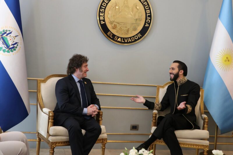 «Va a ser una reunión muy buena, somos amigos con Milei», sostuvo Bukele ante la prensa, donde también aprovechó para remarcar su apoyo hacia la gestión de La Libertad Avanza: «Me gusta lo que está haciendo». Se trata del segundo encuentro entre ambos, la primera fue en la ceremonia de reelección presidencial del salvadoreño, realizada el 1ro de junio.