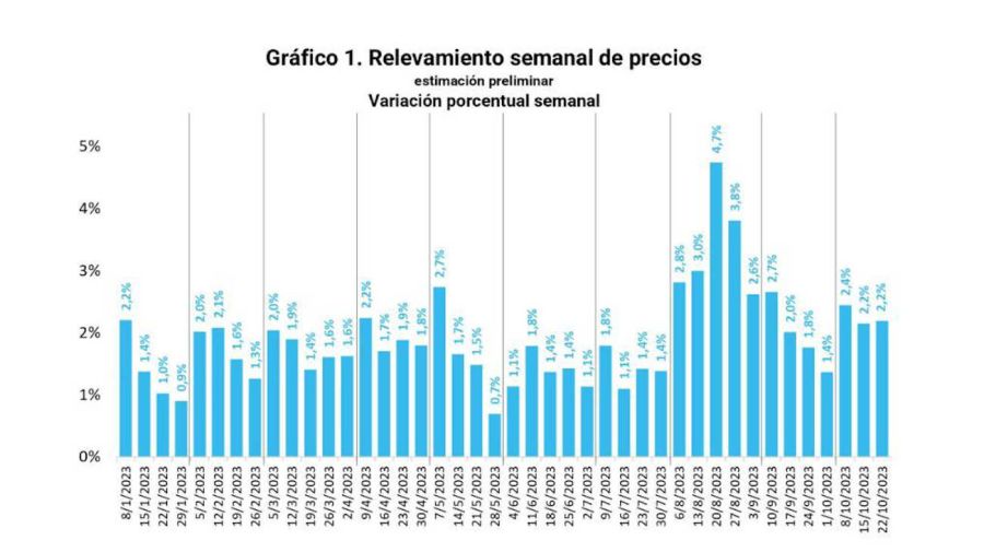 En el informe, la entidad reveló que «la suba semanal» se dio «en un contexto de importante incertidumbre preelectoral, caracterizada por subas en el valor de los dólares financieros e inquietud en muchos productores, comerciantes y consumidores».