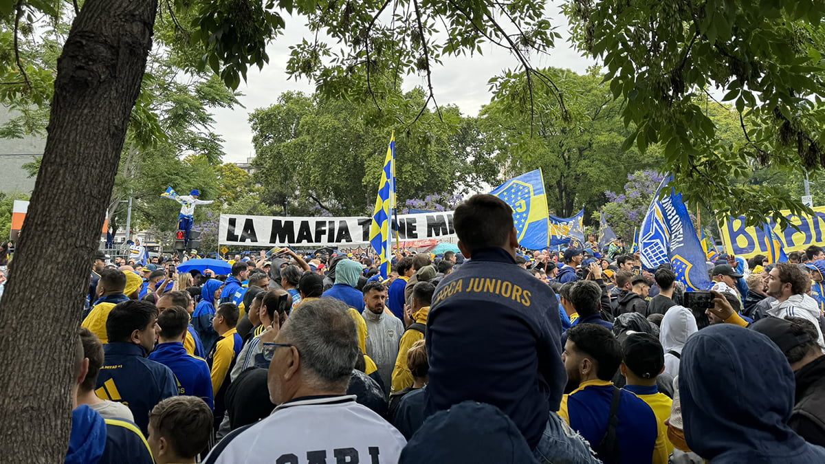 Luego, el vehículo ingresó al playón de La Bombonerita, donde terminó el recorrido. Los hinchas, entonces, se congregaron en uno de los playones de estacionamiento a la espera de la palabra del vicrepresidente.